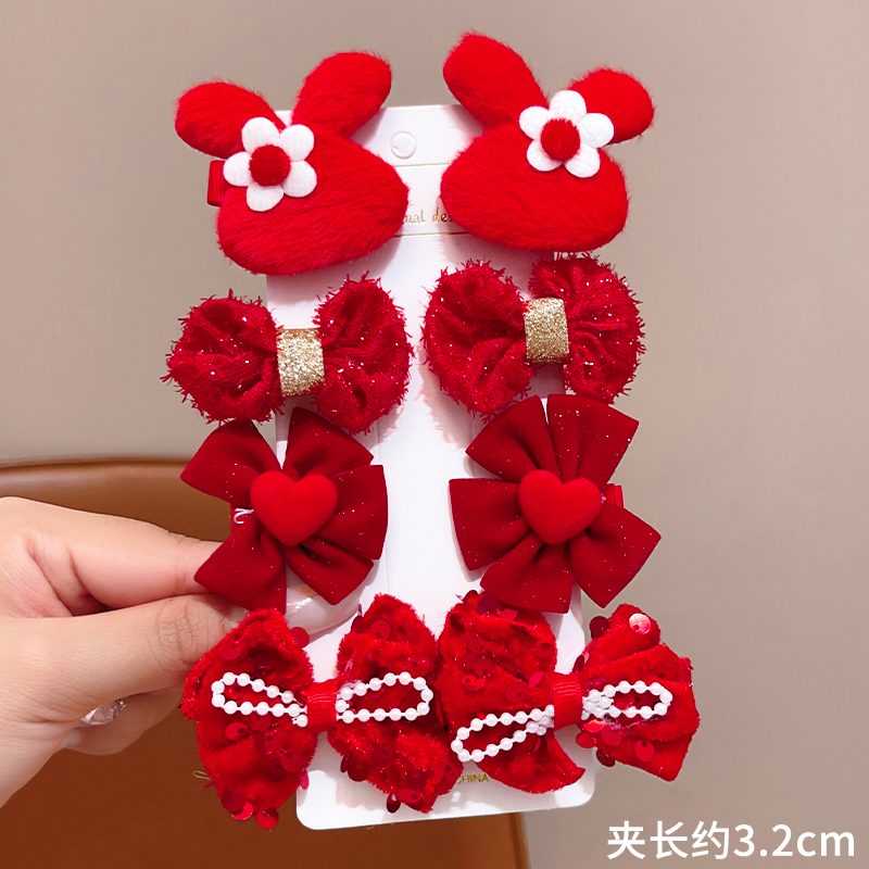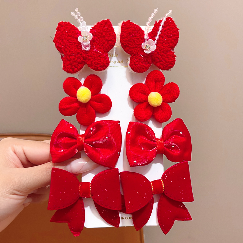 儿童新年发夹套装 蝴蝶结可爱甜美小女孩喜庆发饰对夹发卡夹子边夹