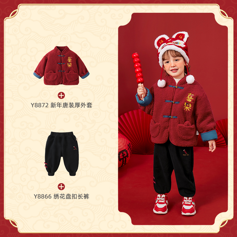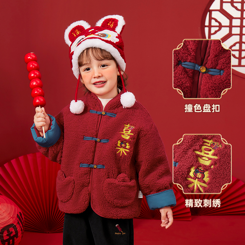 咔咔熊猫男童外套棉服婴儿新年唐装 秋冬棉衣女童棉袄拜年衣服 冬装