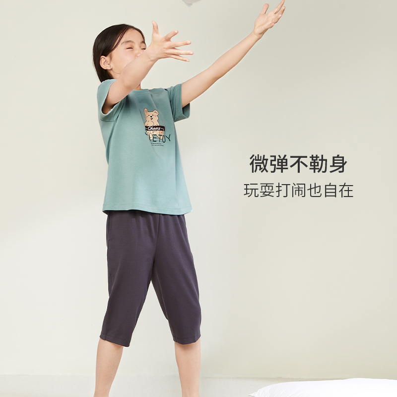 纯棉睡衣短袖 儿童夏季 短裤 圆领卡通童装 秋鹿 家居服套装 舒眠型
