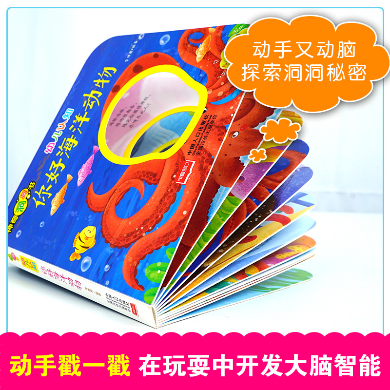 亲子互动书0 6岁 神奇洞洞书 中国人口出版 你好海洋动物 儿童探索关键期翻翻乐 社 幼儿认知