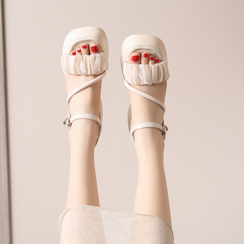 粗跟凉鞋 配裙子露趾高跟鞋 女2025年夏季 厚底百搭罗马鞋 潮 新款 法式