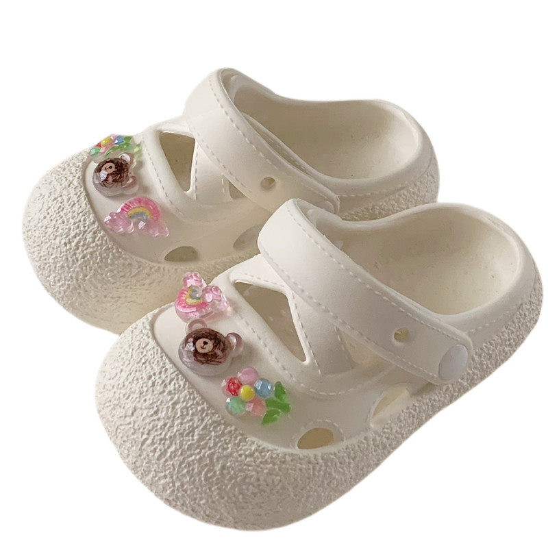 儿童外穿防滑休闲少女心沙滩凉鞋 两穿可爱花朵小熊女童洞洞鞋 夏季