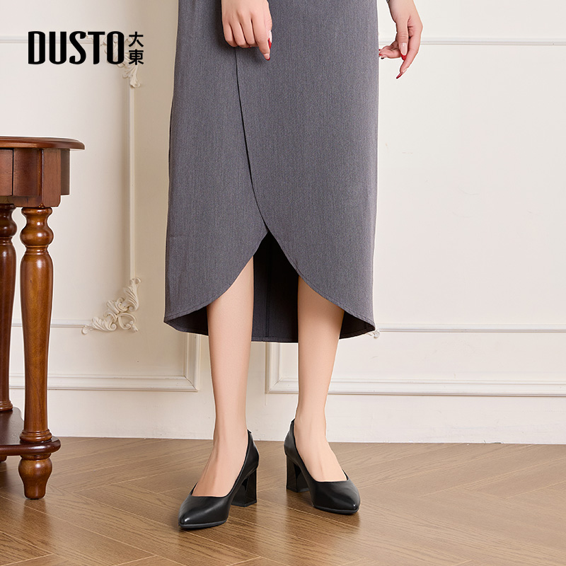 单鞋 通勤鞋 女2025新款 配旗袍工作皮鞋 浅口方头粗跟裸色鞋 真皮法式