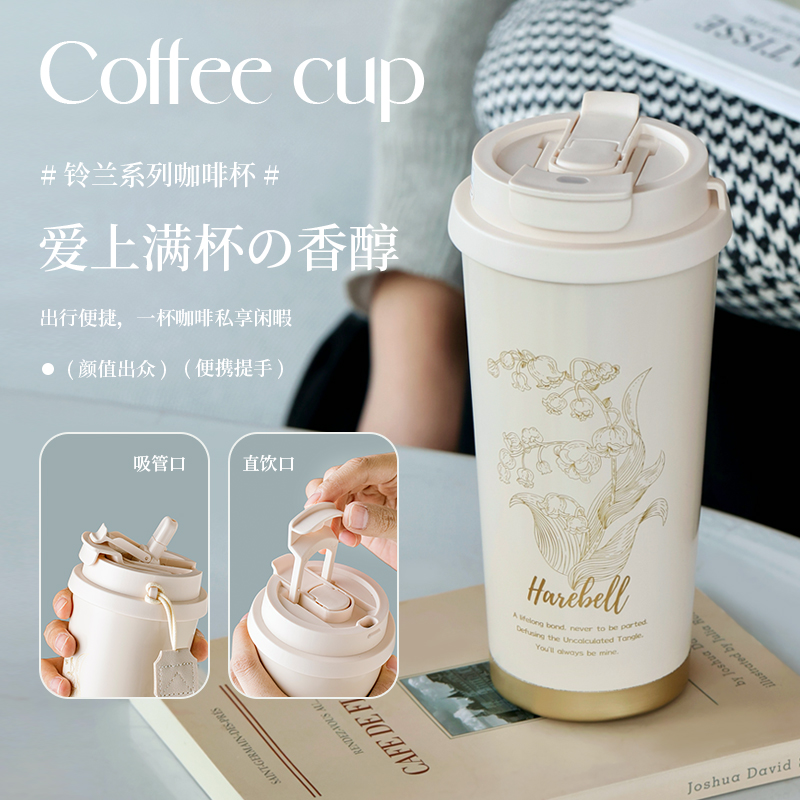 咖啡杯保温杯新款 2025双饮水杯女学生防漏带吸管随行杯子便携定制