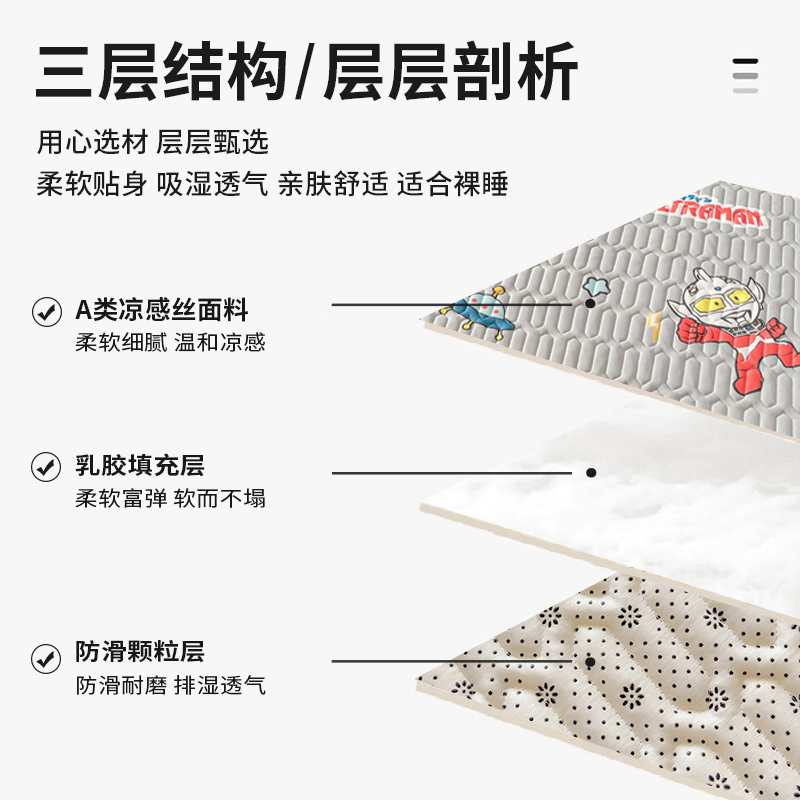 奥特曼A类乳胶冰丝凉席三件套宿舍学生单人儿童夏季 凉垫床单夏天