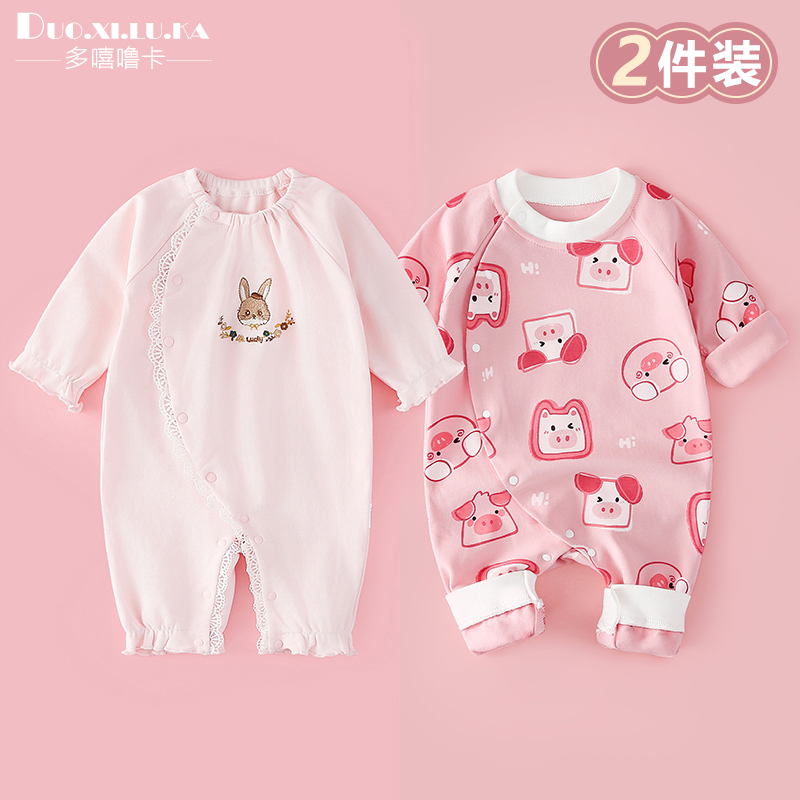 2套装 外出服宝宝连体衣洋气 女童纯棉A类爬服超萌哈衣春秋新款