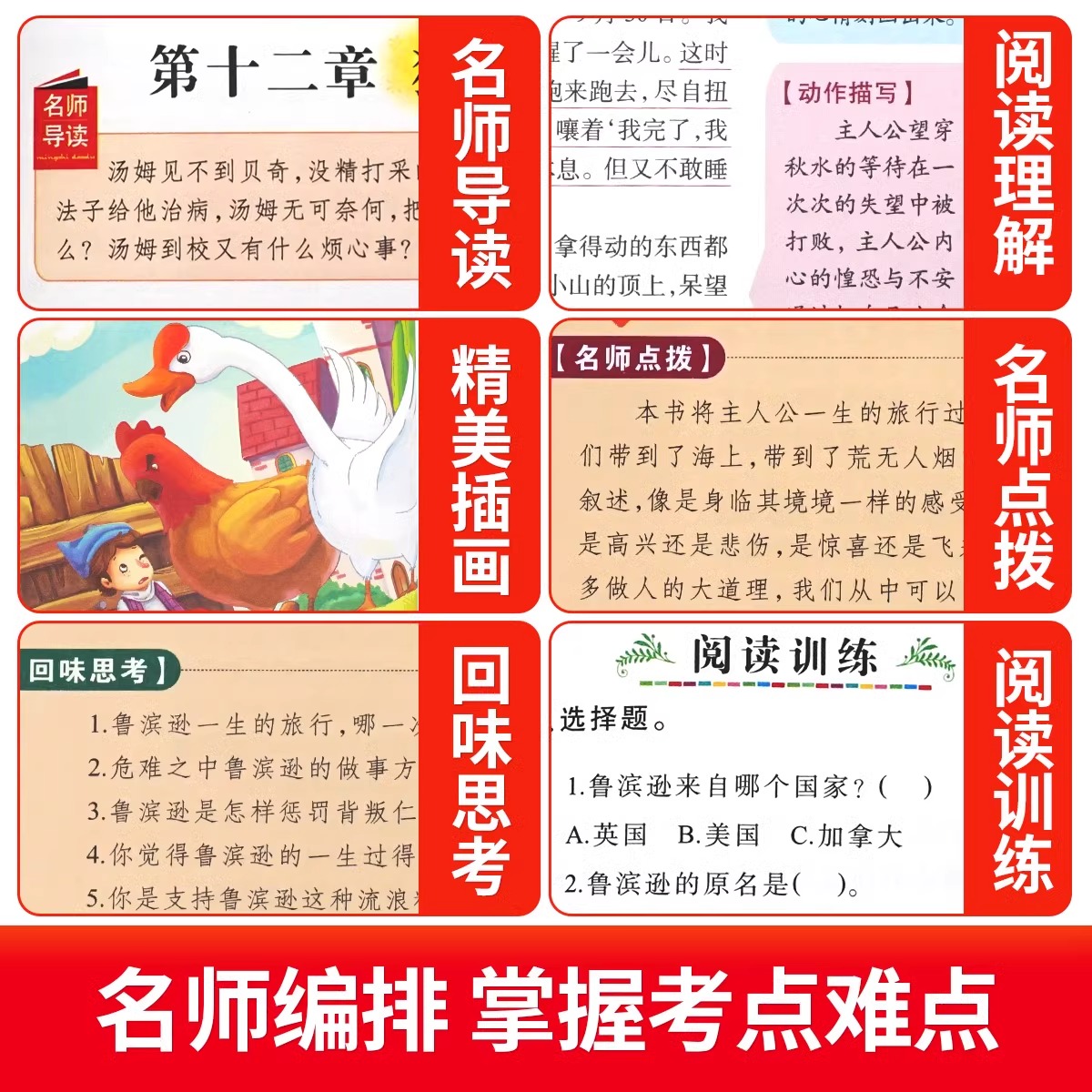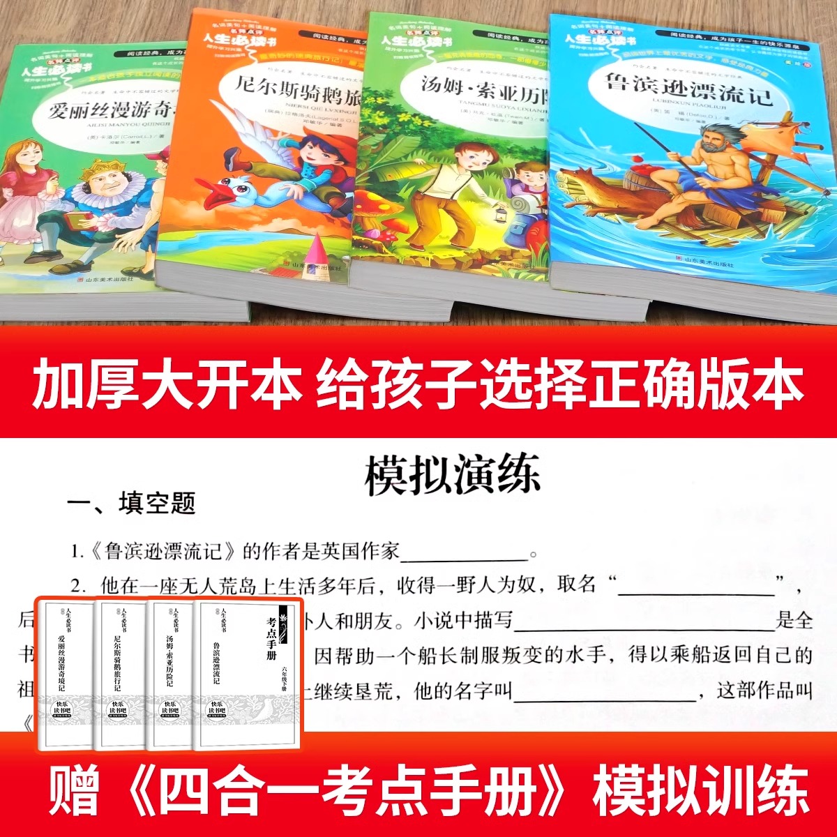 快乐读书吧6下阅读爱丽丝漫游奇境汤姆索亚历险记尼尔斯骑鹅旅行记鲁滨孙全套完整版 鲁滨逊漂流记六年级下册必读 课外书原著正版