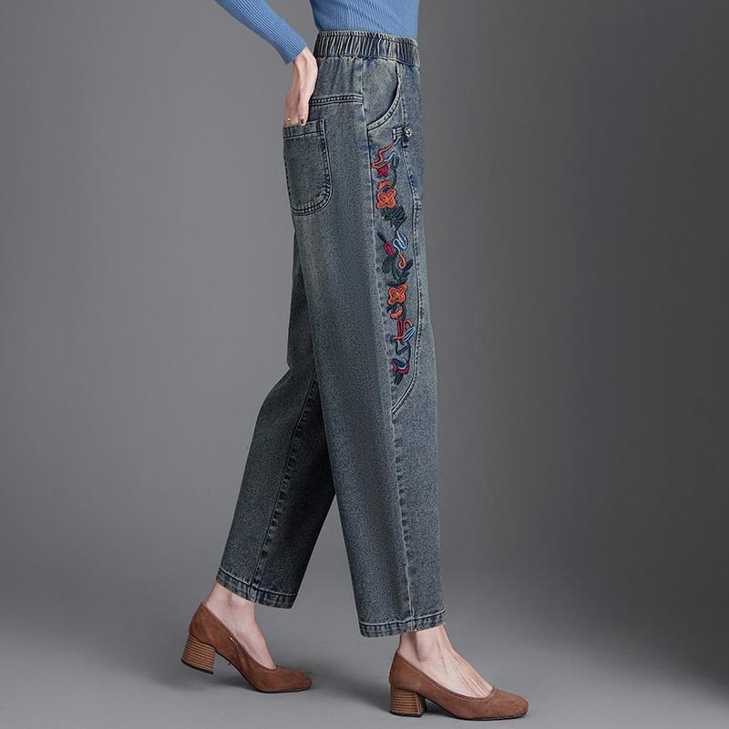 子女装 三福牛仔长裤 复古简约宽松蓝色弯刀裤 秋季 504874 女2025新款