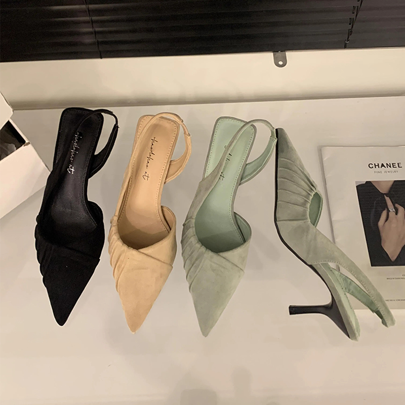 仙女气质名媛尖头单鞋 法式 绿色包头凉鞋 女2025春夏新款 细跟高跟鞋