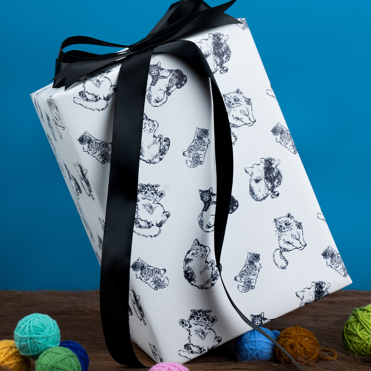 纸大尺寸中秋教师节送同学儿童生日伴手礼盒高级感包书皮纸装 慵懒小猫可爱手绘礼物包装 饰彩纸 一树家 ISUKA