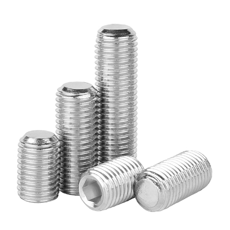 304不锈钢细牙内六角平端紧定螺丝无头平头机米顶丝止付螺钉大全