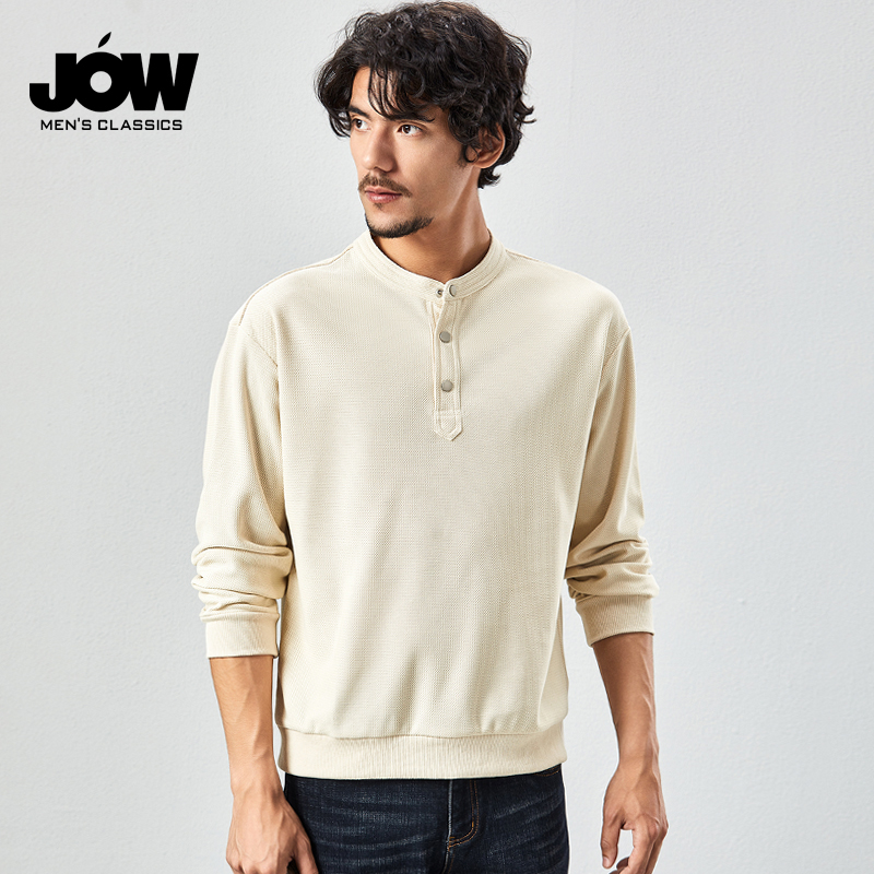 宽松休闲卫衣男士 t恤男春秋季 小众设计感上衣 乔沃亨利领长袖 JOW