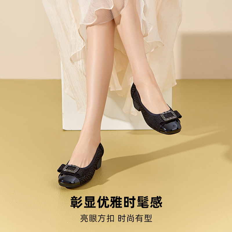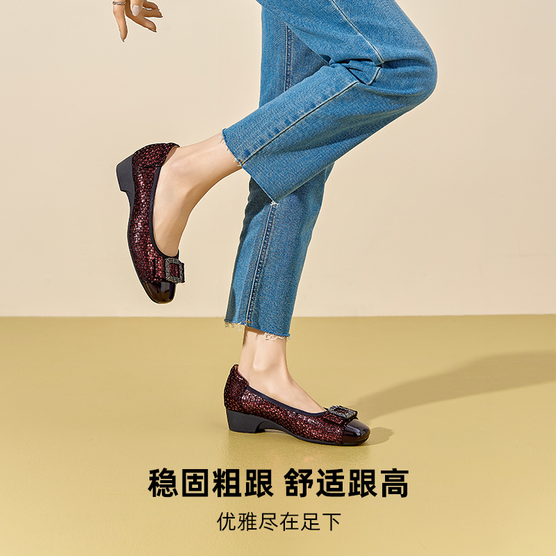 仙女风瓢鞋 秋季 浅口百搭中跟奶奶鞋 大码 真皮单鞋 女鞋 粗跟2025新款
