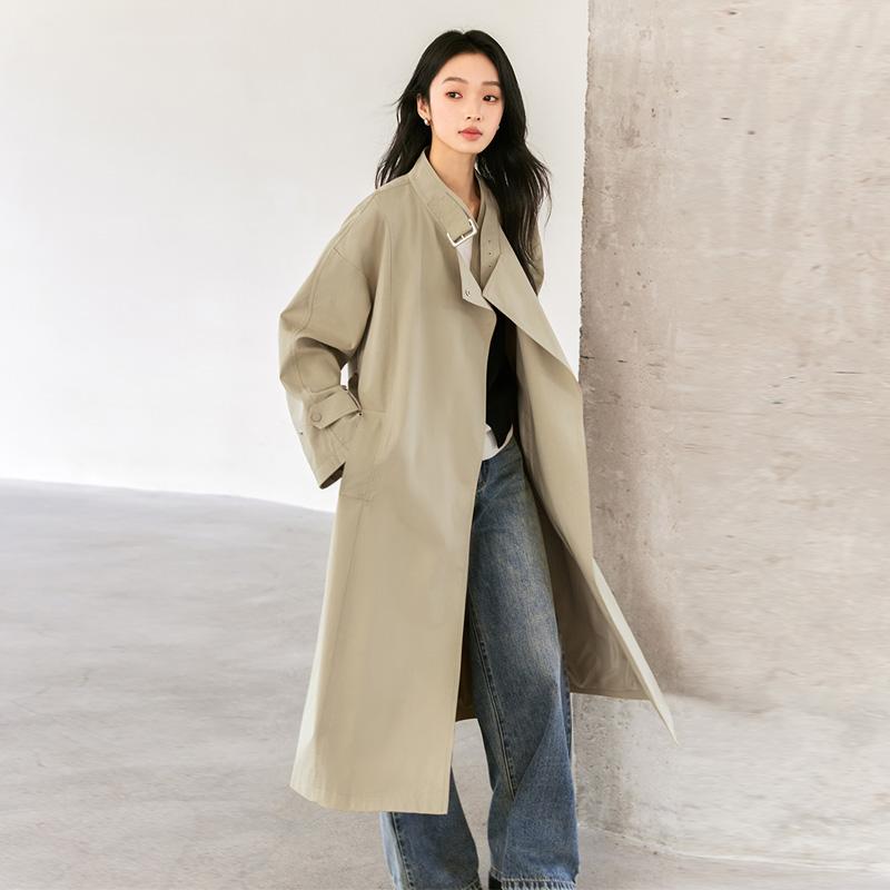 RUISHI芮时 百搭风衣外套女春秋 立领挺括定制一粒扣廓形短长款