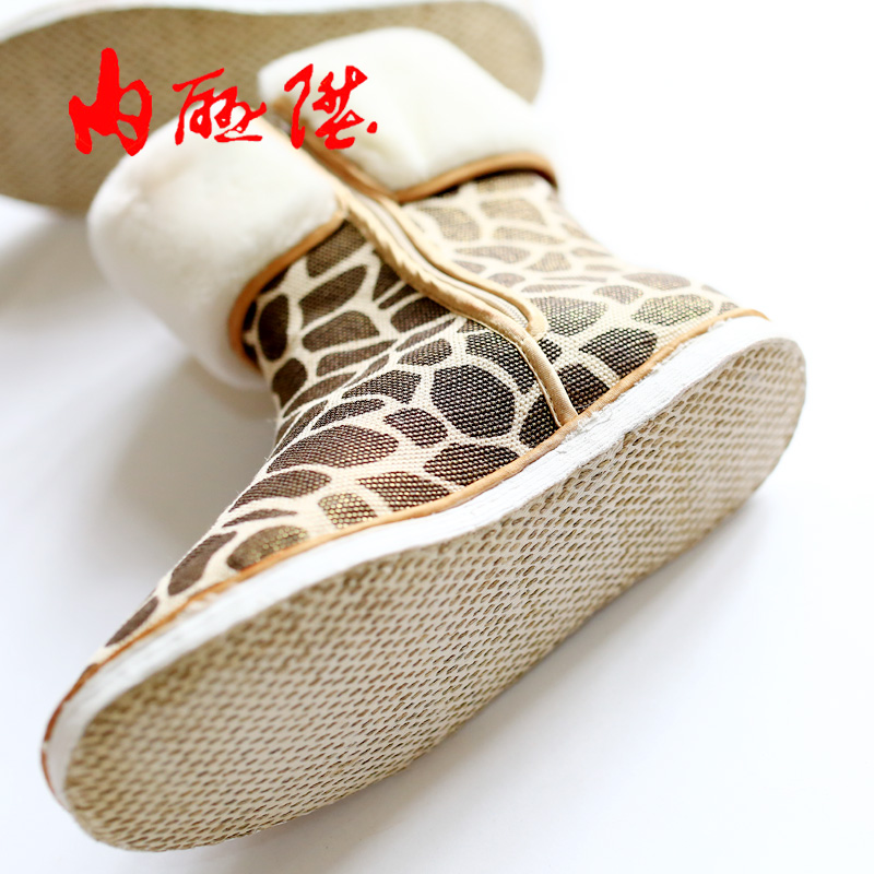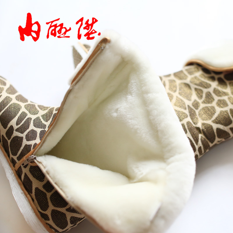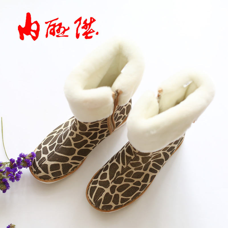 手工千层底豹纹毛口高帮拉链棉靴8719A 棉鞋 内联升女鞋 冬季