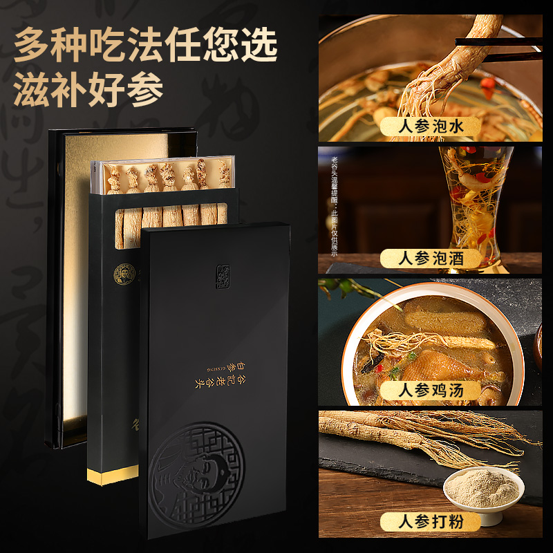 老谷头长白山人参东北特产干参泡酒煲汤白参整支生晒参山参礼品