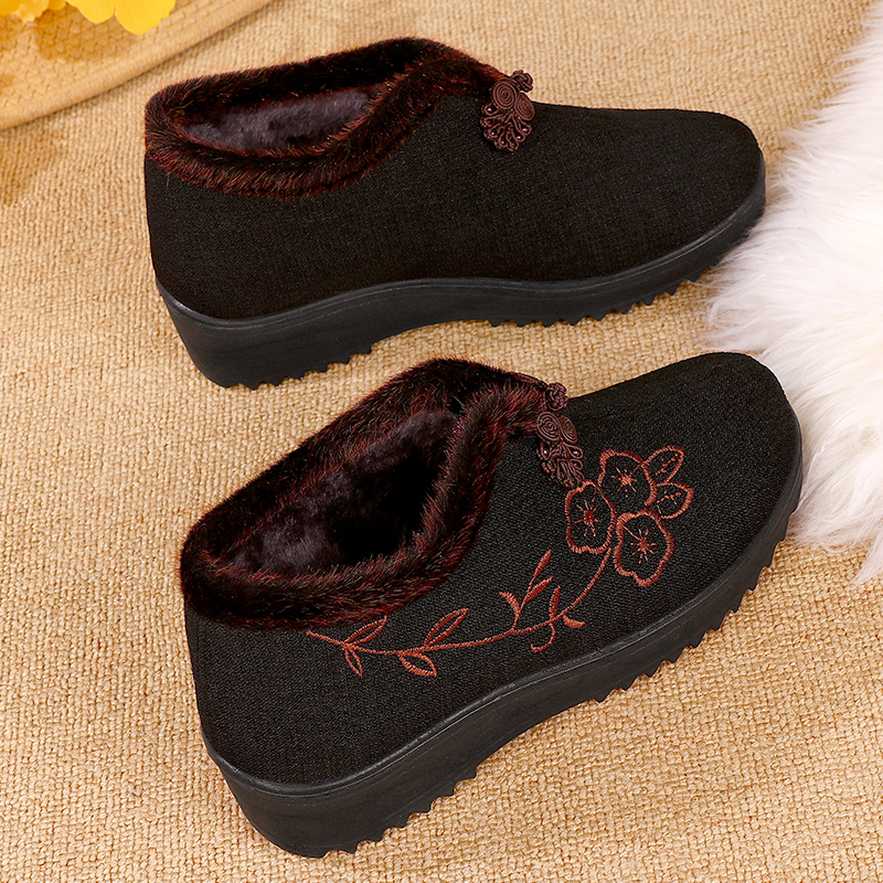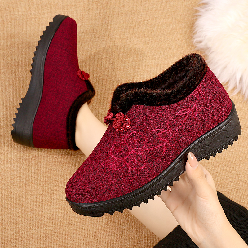 女款 老北京棉鞋 一脚蹬老年棉鞋 加绒毛毛鞋 轻便防滑平底休闲 女冬季
