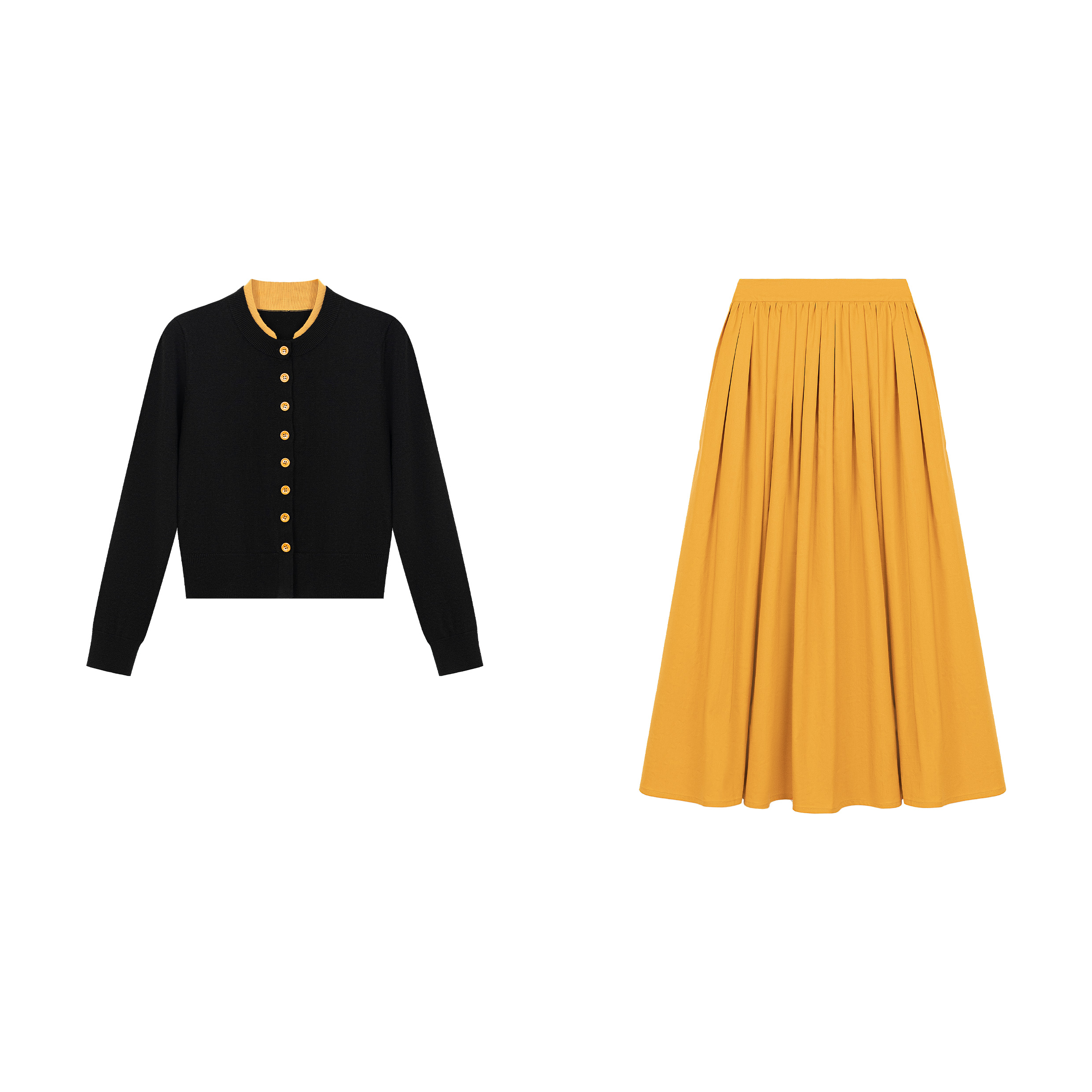 新款 秋季 撞色百搭针织开衫 长袖 女 乔拉 上衣半身裙套装 南瓜幻想