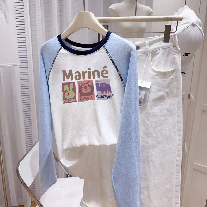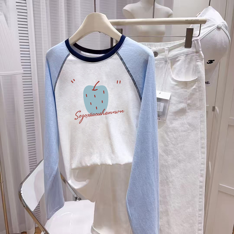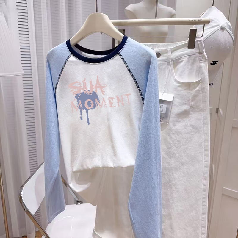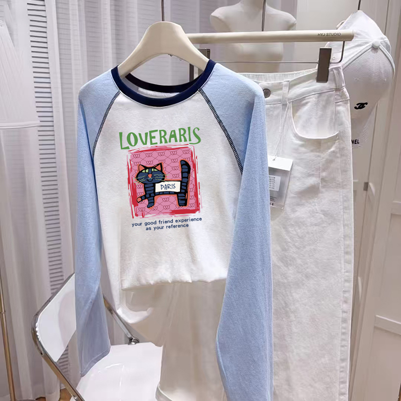 胖mm打底衫 宽松慵懒风大码 女早秋单穿上衣 t恤女2025新款 插肩长袖