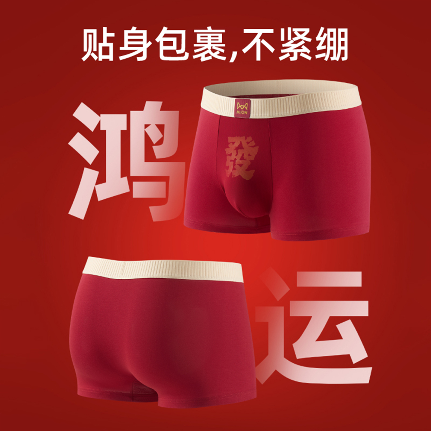 衩运动男款 猫人纯棉男士 高档青少年男生四角平角短裤 2025新款 内裤