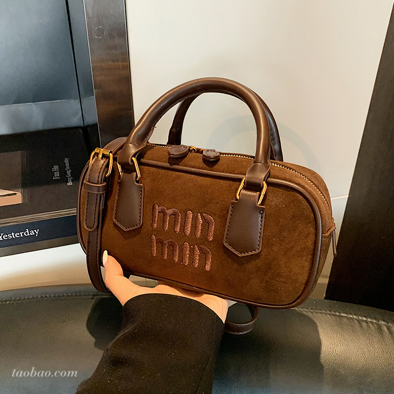 通勤斜挎包女式 时尚 手提保龄球包 复古磨砂包包2025新款 杺薇秋冬季