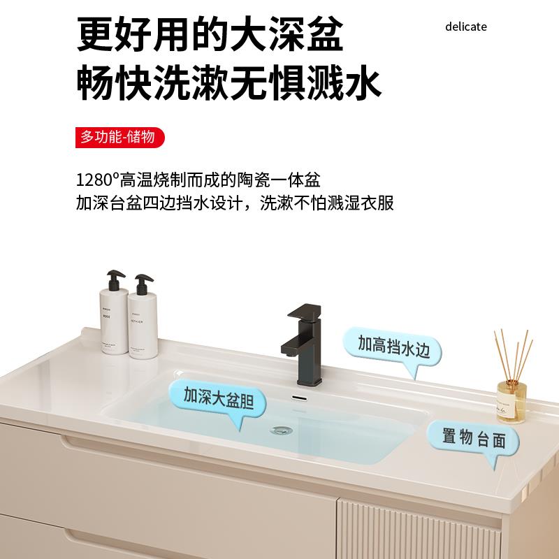 智能橡木烤漆侧边收纳浴室柜卫生间洗脸盆柜组合陶瓷一体盆洗漱台