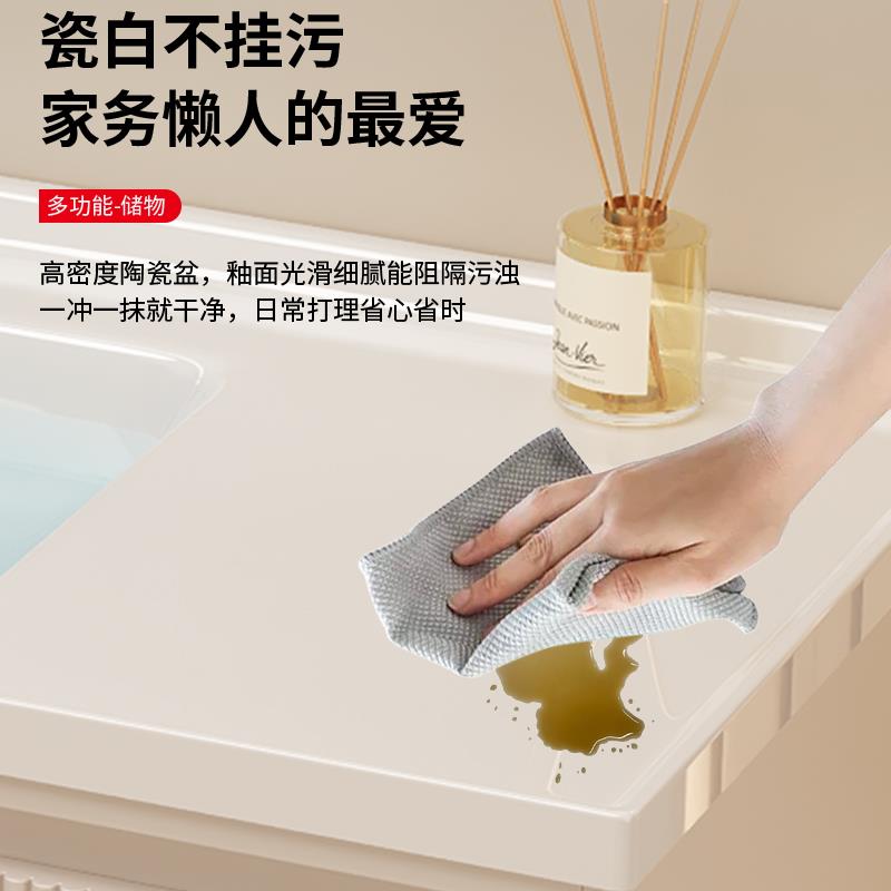 现代简约浴室柜组合卫生间陶瓷一体盆洗手洗脸盆落地式 洗漱台套装