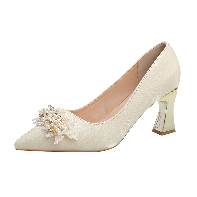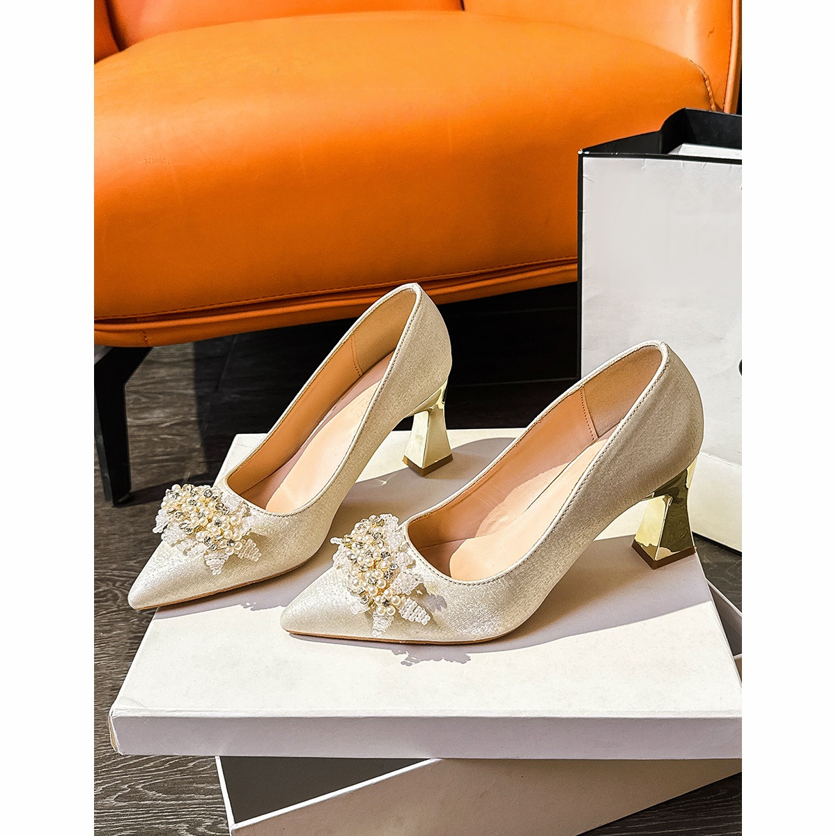 平时可穿单鞋 法式 婚纱不累脚新娘鞋 女气质粗跟婚鞋 绝美绸缎高跟鞋