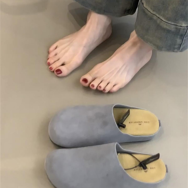 真皮 一脚蹬懒人博肯鞋 春秋勃肯鞋 女包头孕妇半拖外穿2025复古新款