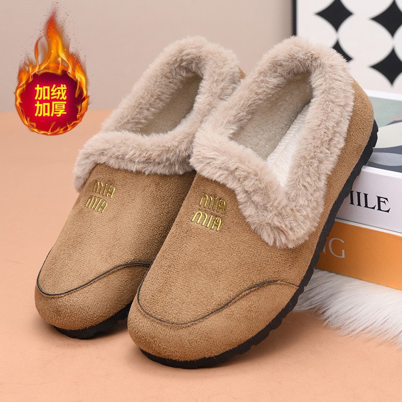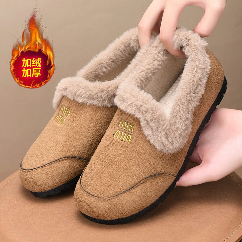 加绒加厚保暖一脚蹬软底防滑妈妈鞋 新款 雪地靴 女2024冬季 棉鞋