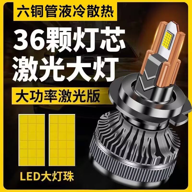 新款 六铜管36灯芯激光汽车led大灯h1h11近光h7远光h4一体超亮聚光