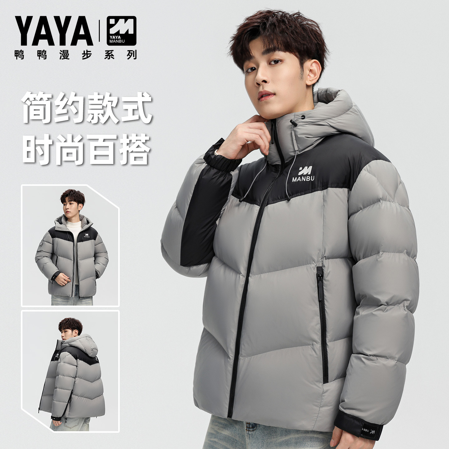 鸭鸭官方旗舰店2025长袖 复古港风拼接短外套保暖cleanfit风羽绒服
