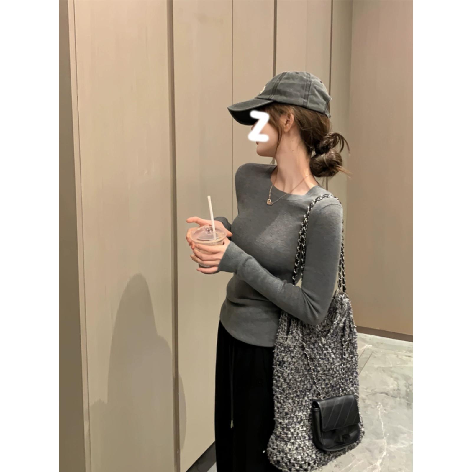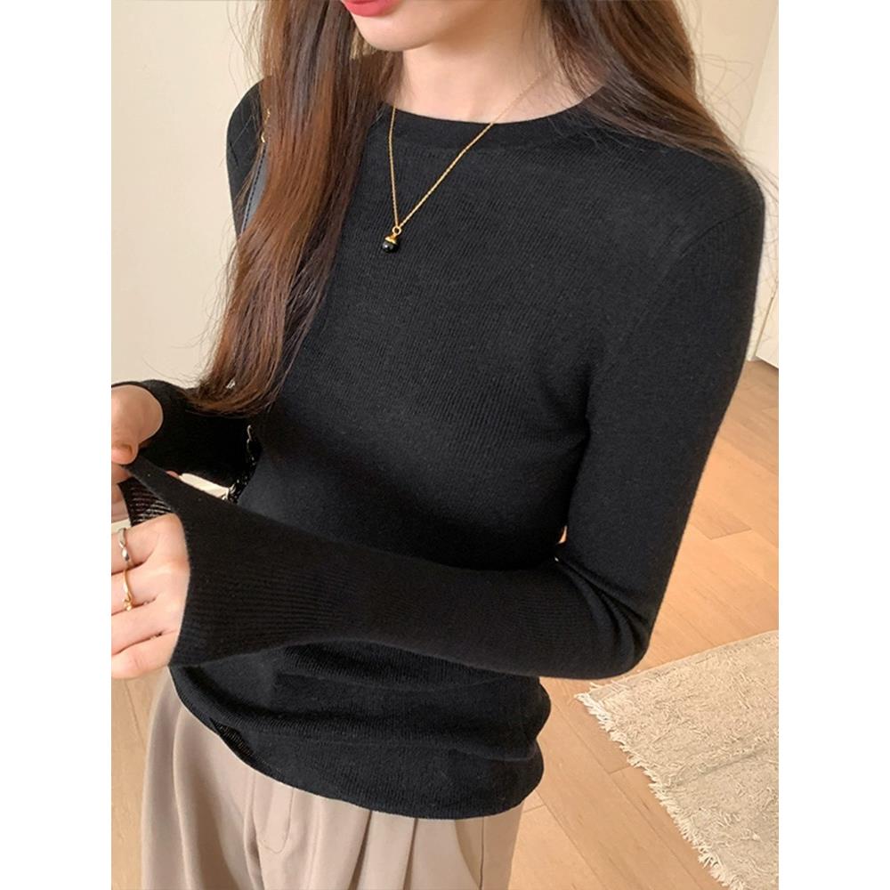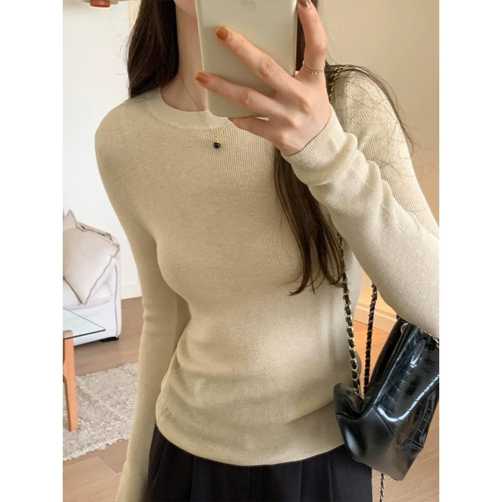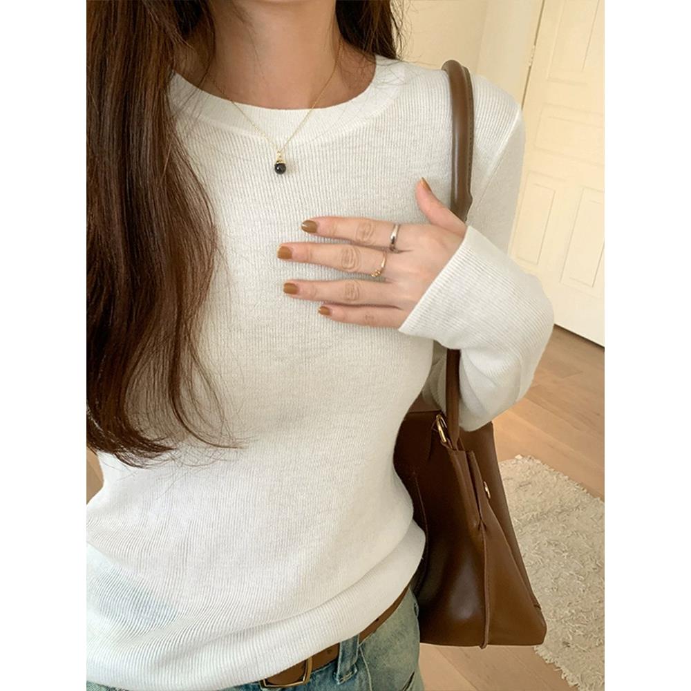 纯色圆领正肩内搭叠穿高级感上衣 基础款 软糯毛衣针织打底衫 女秋季