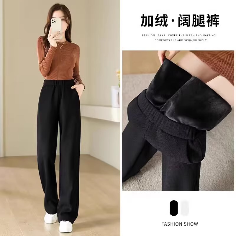 高腰垂感直筒休闲女裤 七色纺女长裤 大码 秋冬新款 子 加绒加厚阔腿裤