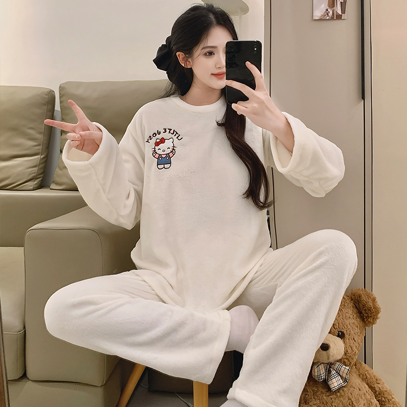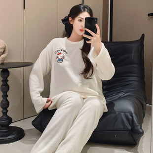 可爱圆领家居服套装 珊瑚绒睡衣女冬天2025新款 卡通加绒加厚秋冬季