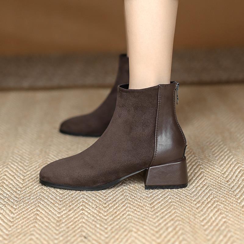 美拉德棕色靴子厚底黑色短靴 秋复古女鞋 英伦风马丁靴女款 2025新款