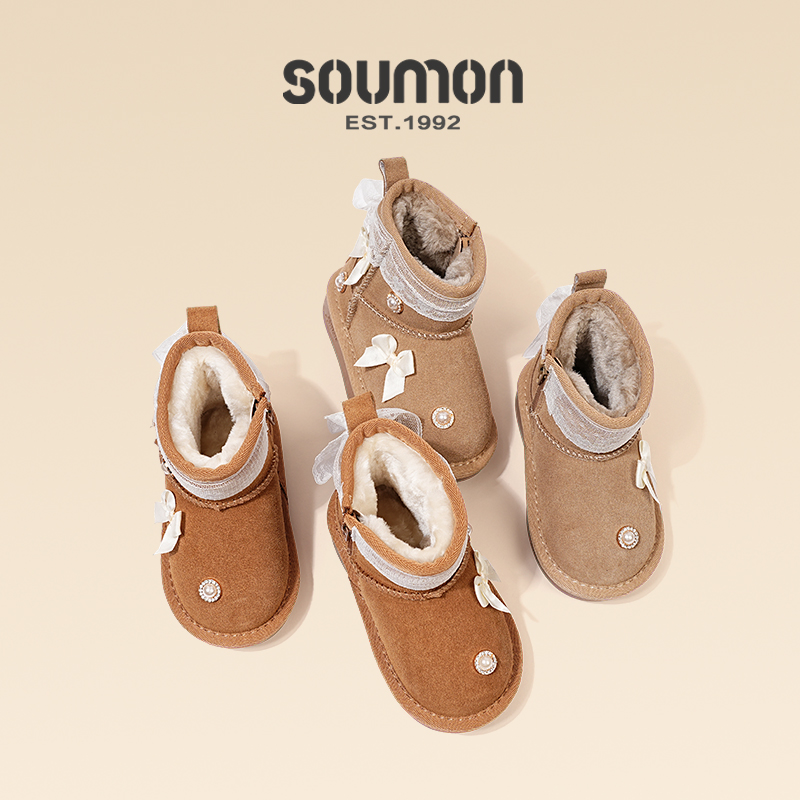 844834 加绒加厚保暖厚底圆头女毛毛鞋 三福雪地靴女冬季 2025新款
