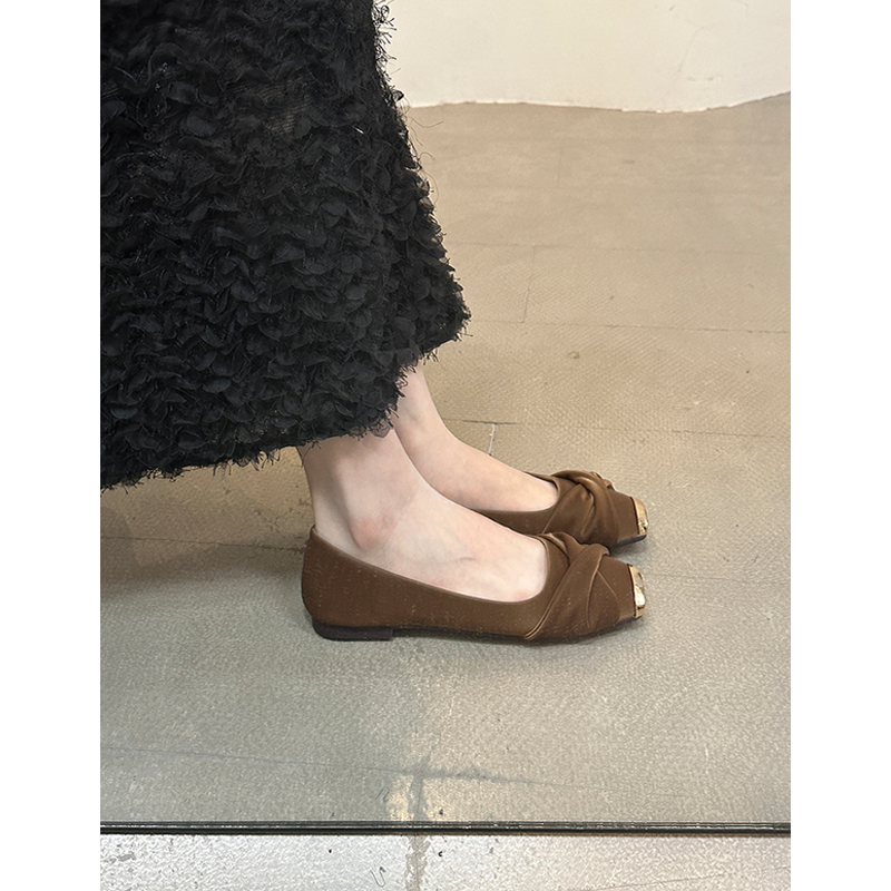 女2025年夏季 一脚蹬女鞋 新款 方头浅口单鞋 子 法式 热风银色平底单鞋