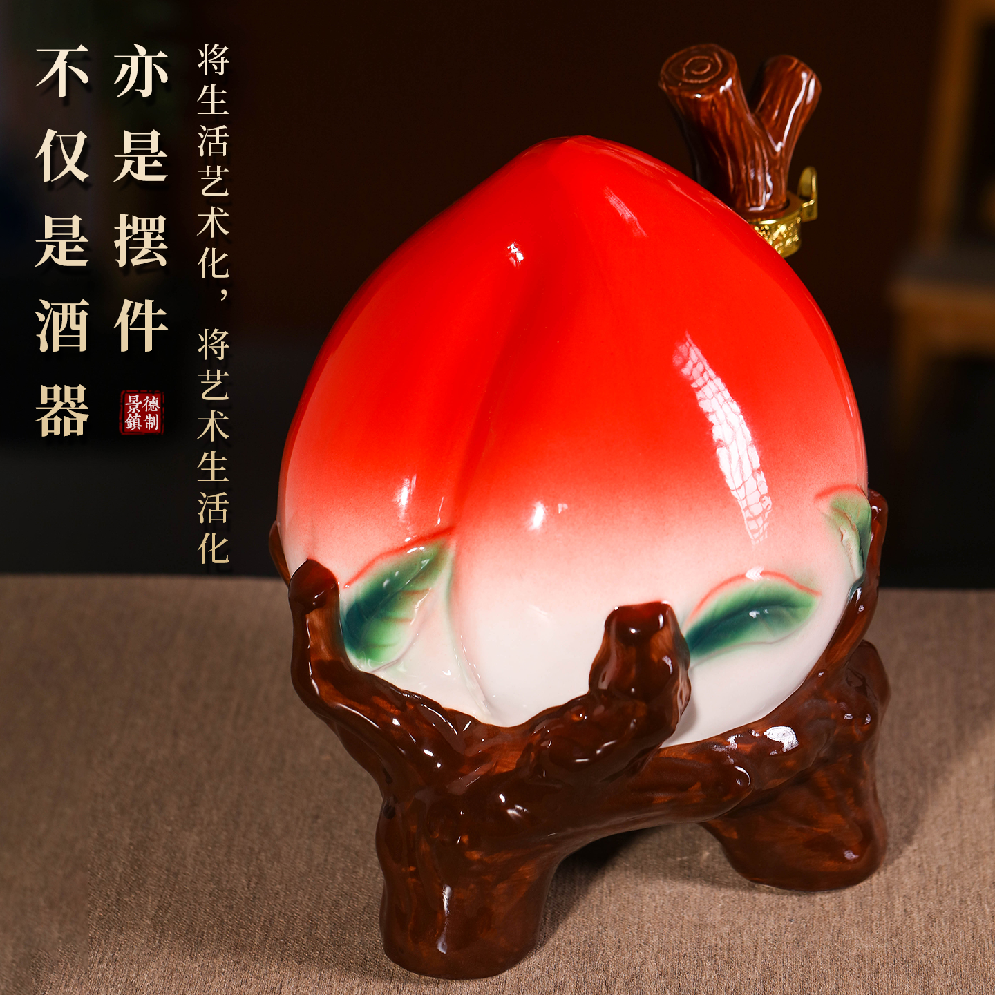 景德镇陶瓷空酒瓶寿桃泡酒坛子2斤5斤礼盒寿宴礼品散装 酒罐酒壶