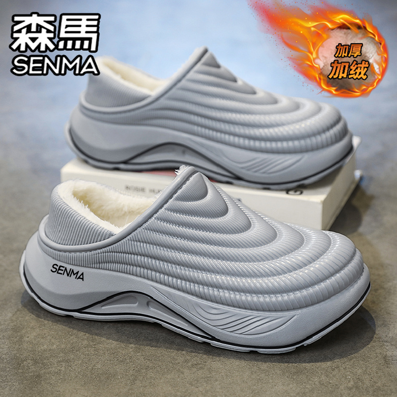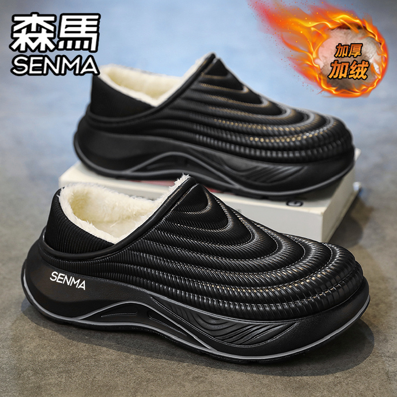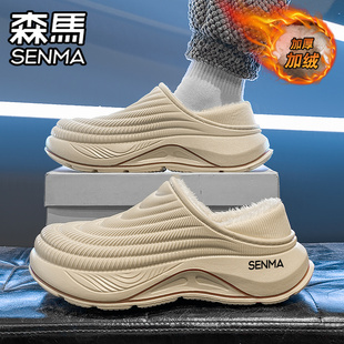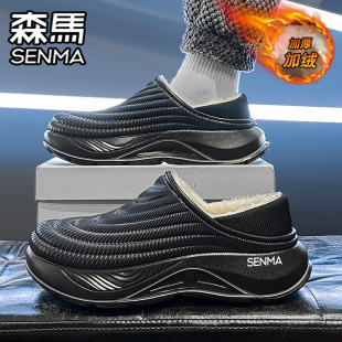 男2025新款 包跟拖鞋 冬季 外穿防水防滑大码 加绒保暖棉鞋 森马棉拖鞋