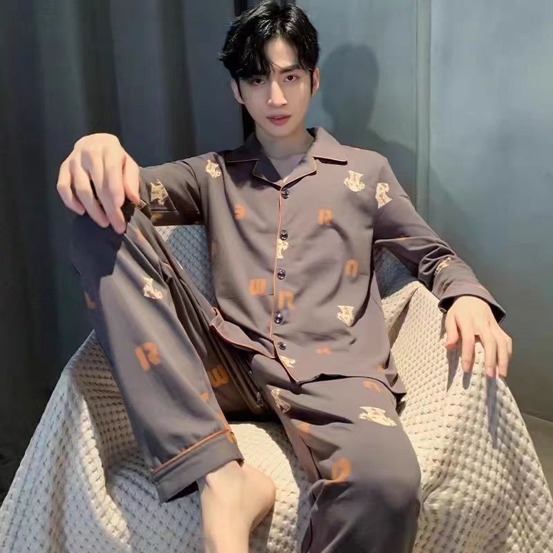 套装 高颜值好看睡衣男春秋季 外穿大码 纯棉青少年家居服男薄款 长袖