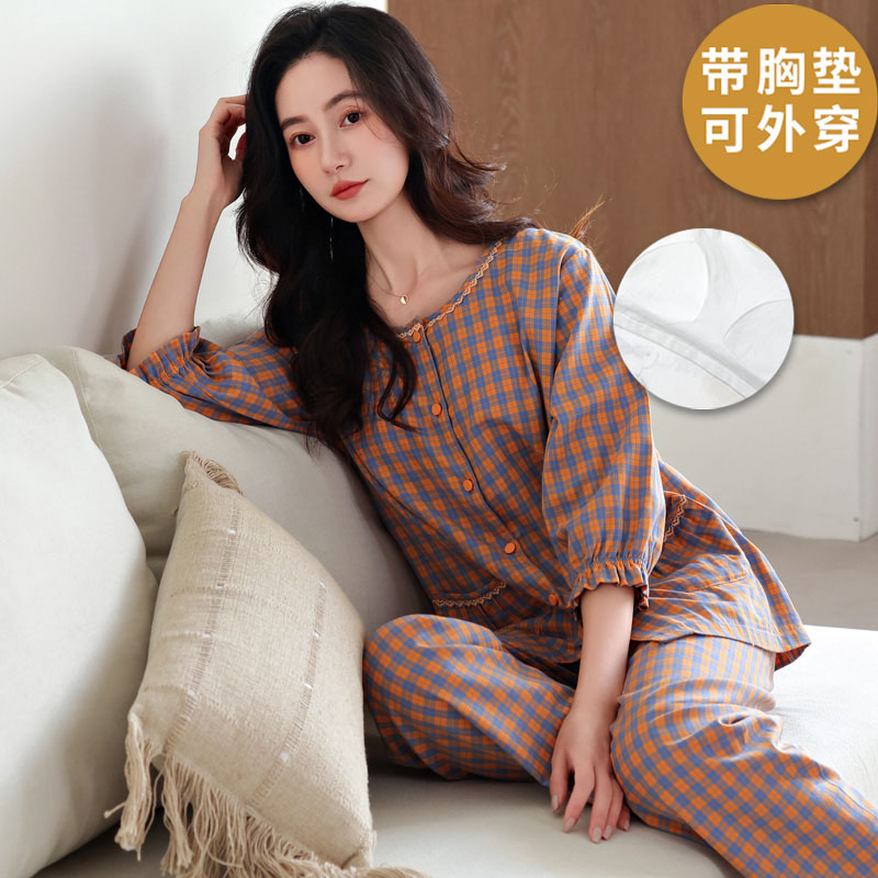 长裤 纯棉长袖 薄款 韩式 浪莎2025新款 家居服套装 带胸垫睡衣女春秋季