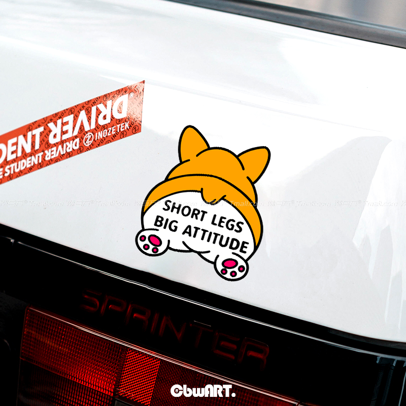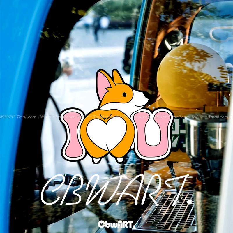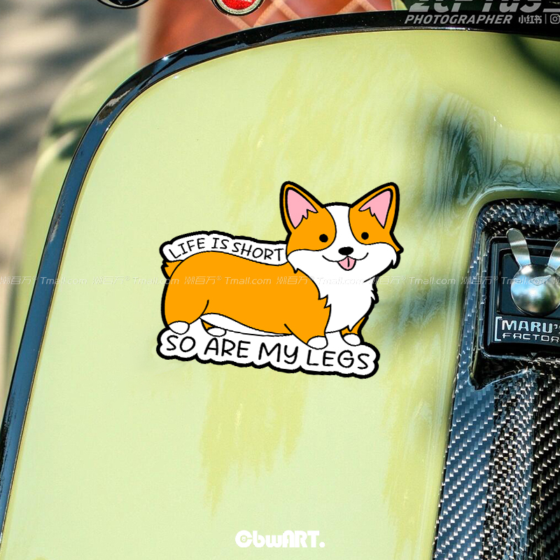 反光车贴可爱卡通柯基爱心屁屁汽车划痕遮挡摩托电动车身装 饰贴纸