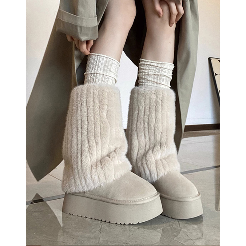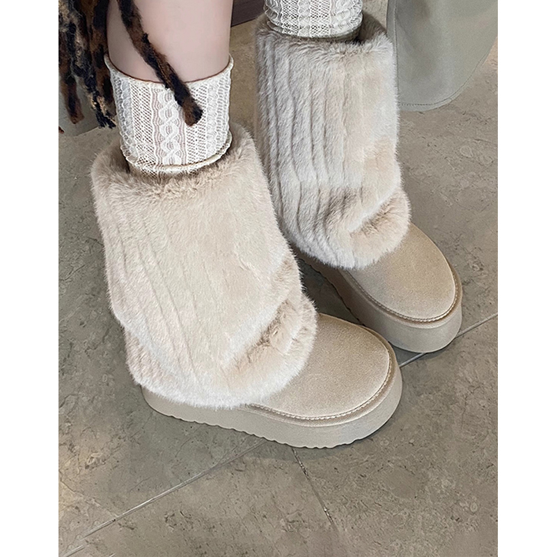 东北中筒裤 加绒加厚毛毛棉鞋 管靴内增高 冬季 厚底雪地靴女2025新款