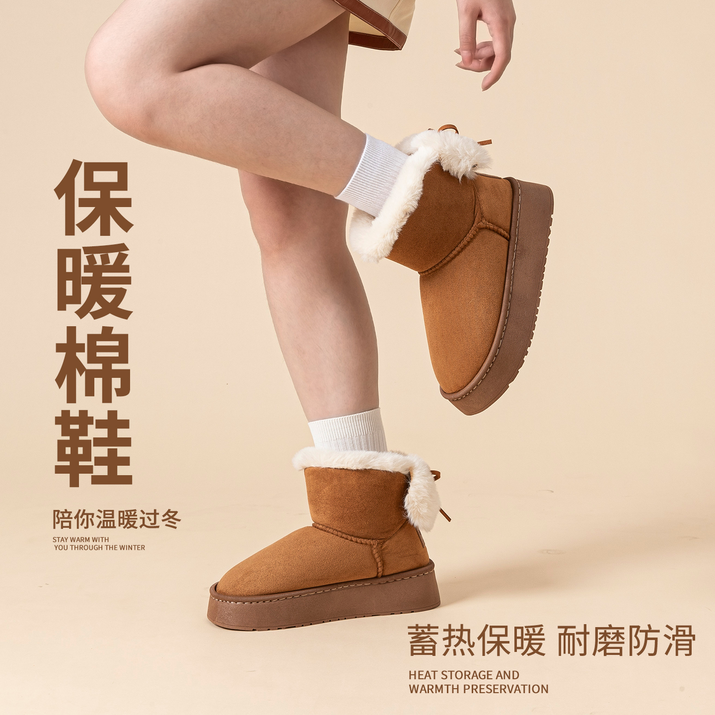 室内家居加绒保暖防滑雪地外穿棉鞋 冬季 女士 女2025新款 厚底棉拖鞋
