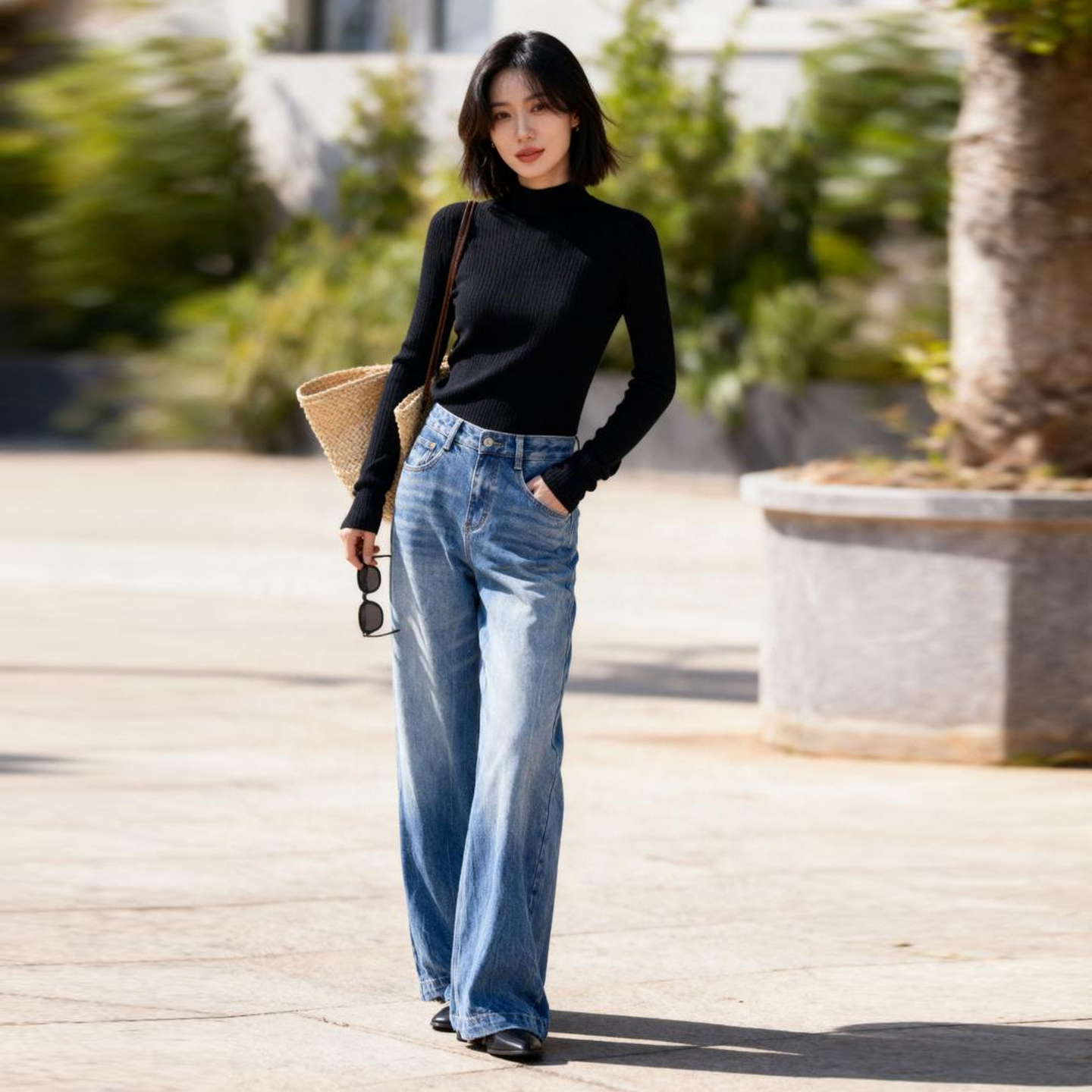 女装 三福牛仔裤 设计感可拆搭片宽松直筒阔腿裤 秋季 504875 2025新款