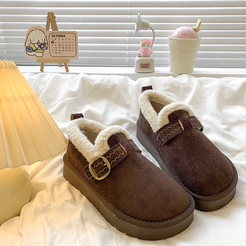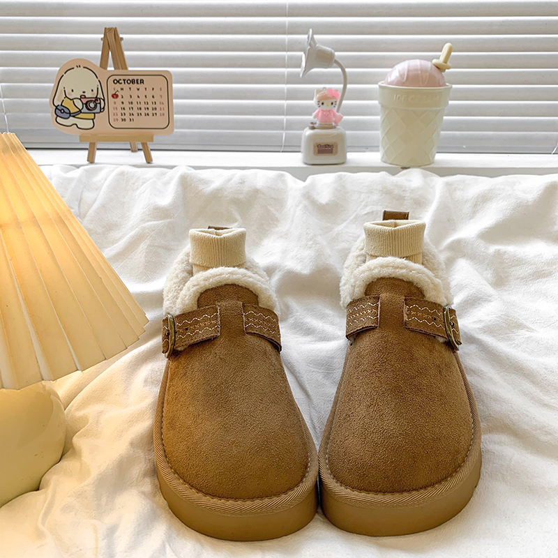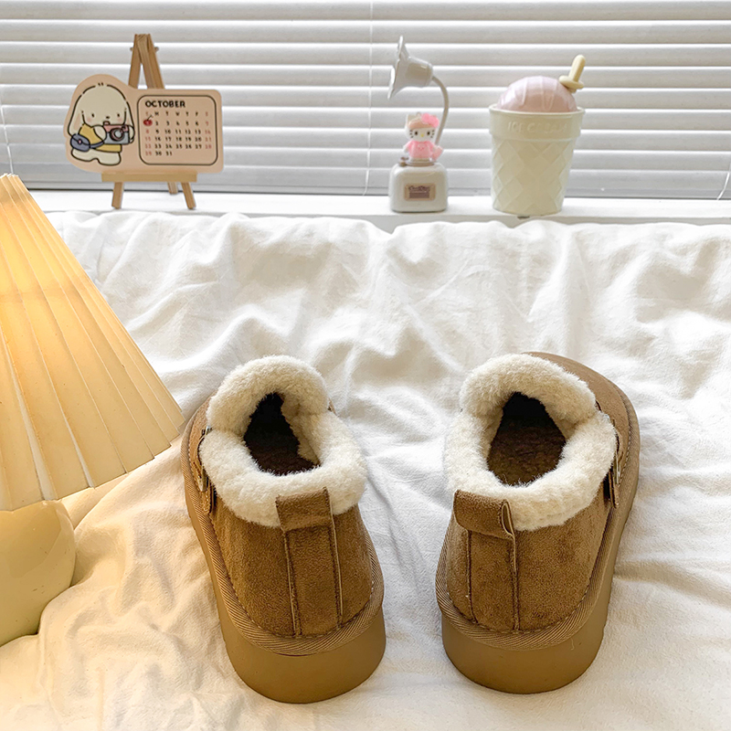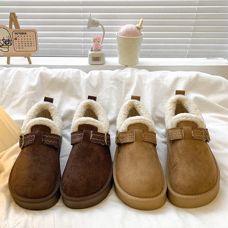 百搭厚底一脚蹬博肯雪地靴 2025秋冬新款 复古加绒勃肯鞋 女豆豆棉鞋