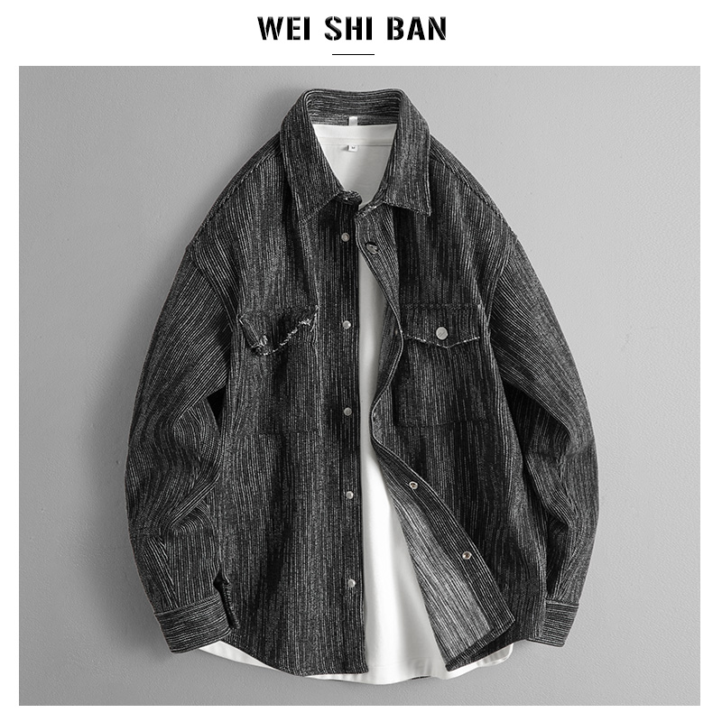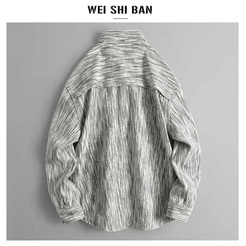 品质港风翻领长袖 复古艺术纹理休闲衬衫 衬衣式 美式 外套男士 秋冬季