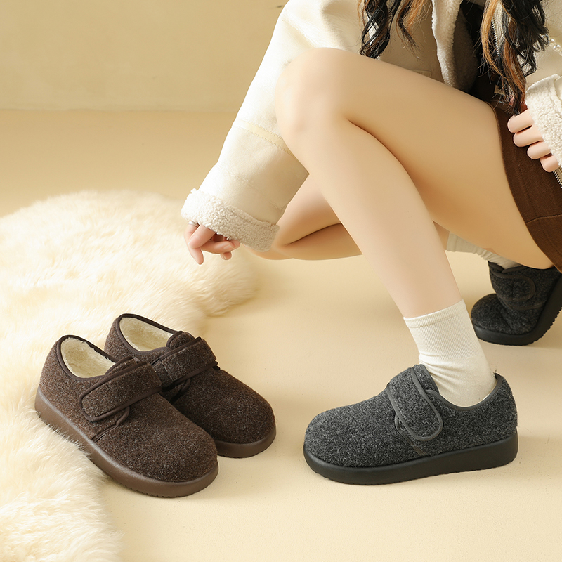 加绒加厚保暖一脚蹬软底防滑妈妈鞋 新款 雪地靴 女2024冬季 棉鞋