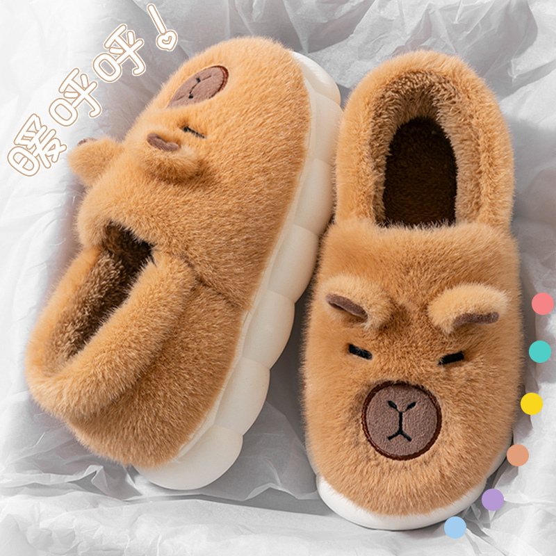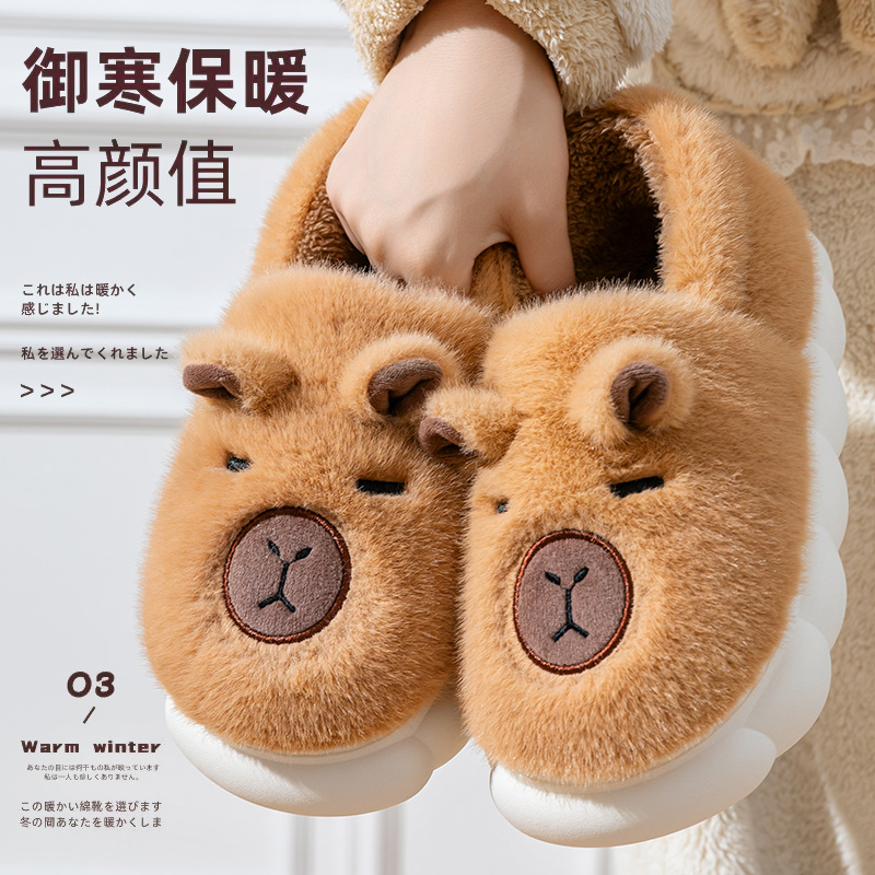 女士棉鞋 2025新款 月子鞋 女包跟毛绒情侣可爱秋冬季 卡皮巴拉棉拖鞋